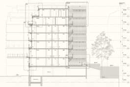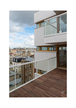 Le programme vise la création de 24 logements alors que le bâtiment existant bien que non classé allait être naturellement surveillé par la Commission du Vieux Paris. A ce titre la façade est conservée et intégrée à la restructuration lourde de l’ouvrage. De par l’exiguïté de la parcelle, particulièrement en son fond, il était a priori impossible de loger l’ensemble du programme sans offrir un mur aveugle aux mitoyens sur cour.