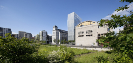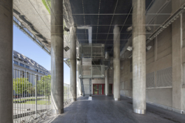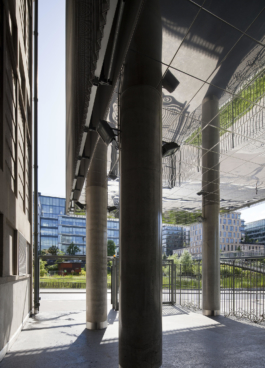 The Université Paris Diderot moved from the Jussieu site in 2007 to the new Quartier Rive Gauche in the 13th arrondissement of Paris, inside the Grand Moulins de Paris and the Halle aux Farines buildings. Located on either side of the Esplanade Pierre Vidal-Naquet that leads to the Seine, this remarkable piece of early 21st century industrial heritage was restructured by the architects Rudy Ricciotti and Nicolas Michelin respectively.