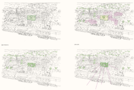 Le maitre d’ouvrage souhaite densifier les constructions dans le plus grand respect du lieu et du quartier. La Mairie souhaite la conservation de la façade de la maison existante. L’enjeu est donc de se placer dans la continuité de la ville actuelle, des bâtiments existants et du paysage. Les bâtiments mitoyens du site sont de grandes dimensions, et ne répondent qu’à la dimension paysagère et métropolitaine. Ils vont chercher les vues et la lumière en hauteur en interceptant violemment la pente, créant des façades hautes et monumentales, sans relation avec leur site. Réaliser la surface demandée au programme, sur un terrain aussi exceptionnel que contraint, pose la question de la densité perçue et la manière de la rendre acceptable. Le projet, évidement orienté vers le paysage et les vues sur Paris s’inscrit de manière sensible dans son site et dans les continuités des villas clodoaldienne. Il concilie d’un côté la géographie, le grand paysage et la métropole et de l’autre, la ville de Saint-Cloud, la rue Dailly et le petit bois. Il transforme cette villa du XIXème siècle en un hameau de villas du XXIème siècle. Elle évoque la ville historique et restitue, de manière contemporaine, un petit Saint-Cloud, des villas en cascade.