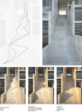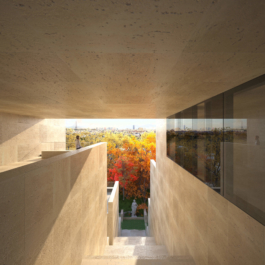 Sur la rue, le projet doit être le prolongement et la réhausse contemporaine de la façade conservée. Ses extensions latérales viennent à l’alignement sur rue et privilégient la continuité avec les bâtiments voisins. Le projet propose une écriture sobre, tenue, composée, qui restitue une cohérence entre les bâtiments existants. L’épannelage est contextuel, appuyé par le contraste des matières. Le contemporain réinterprète l’ancien, la légèreté compense la massivité. Les lieux extérieurs, très qualitatifs, favoriseront la vie en collectivité. Depuis la rue ils se développent en séquence : la cour d’entrée, un porche au travers de la façade conservée, des halls très vitrés, un belvédère, un escalier dans la topographie qui surplombe le petit bois, connecte des placettes plantées, pour rejoindre la clairière. Ces cheminements et ces lieux incitent à la promenade architecturale et permettent de desservir le plus de logements possibles directement par l’extérieur. Des logements qui profitent définitivement des qualités de l’habitat individuel et de l’habitat collectif. Des logements d’exception à Saint-Cloud.
