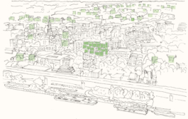 Surplombées par la flèche de son église, les petites rues escarpées abritent des constructions douces, pittoresques et hétéroclites qui ont en commun la petite échelle et le souci de la qualité. Le terrain du projet, rue Dailly, présente une forte déclivité vers la Seine. Le site fait figure de havre de paix, abritant une maison napoléonienne en retrait de la rue, semblant hissée dans la cime de grands arbres anciens plantés en aval et formant l’écrin d’une clairière. Un petit bois, au silence apaisant, en pleine ville, qui évoque un monde merveilleux, imaginaire. Le site est un petit Saint-Cloud à lui seul.