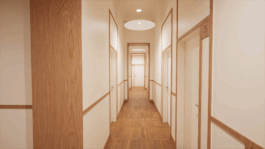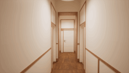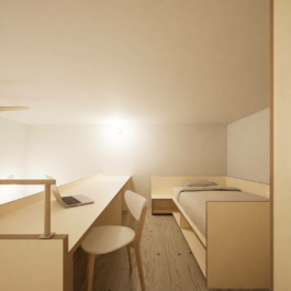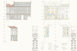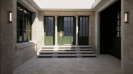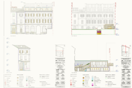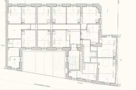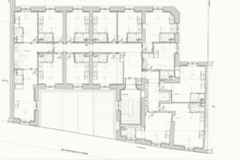 Le projet prévoit la création de 41 logements étudiants et 14 logements pour chercheurs, accompagnés d’espaces communs : local de convivialité, laverie, bureau du gestionnaire, local vélos. La réhabilitation s’attache à préserver l’intégrité architecturale des édifices tout en les adaptant aux normes contemporaines, notamment d’accessibilité PMR. L’intervention privilégie la conservation des éléments existants : menuiseries, façades en pierre ou en béton, escaliers historiques, volumes et dispositions d’origine. La restitution de dispositifs anciens disparus, comme la verrière du vestibule, témoigne d’une démarche patrimoniale attentive et respectueuse.