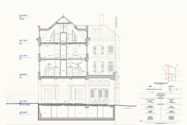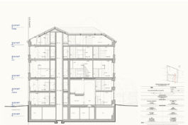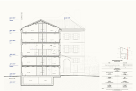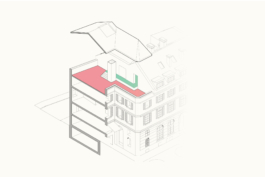 Enfin, le projet adopte une stratégie environnementale exigeante, répondant aux ambitions du Plan Climat de Paris. Il vise des performances thermiques élevées par le biais d’une isolation par l’intérieur, le remplacement de menuiseries, l’usage de matériaux biosourcés, et le raccordement au réseau CPCU. Un système de récupération de chaleur sur eaux grises complète le dispositif. L’enveloppe du bâtiment est renforcée pour garantir un confort d’hiver et un rafraîchissement naturel estival, favorisé par la ventilation croisée et l’effet tampon des arbres. Le projet allie ainsi patrimoine, innovation et durabilité dans une approche architecturale sensible et équilibrée.