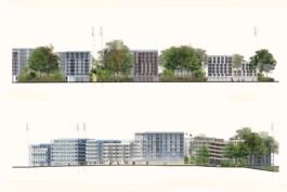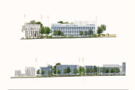 Le projet urbain de l’agence TVK pour le cluster des Medias des JO Paris 2024, à Dugny, et qui sera un véritable quartier de la ville après les JO, s’installe sur le site du Bourget haut lieu de la fête de l’Huma. Les bâtiments font partie d’une succession de bâtiments verticaux qui s’enchâssent dans un talus le long de l’Aire des vents, ils s’intègrent dans le paysage arboré en bordure de la RD qu’ils scandent, rythment et animent.